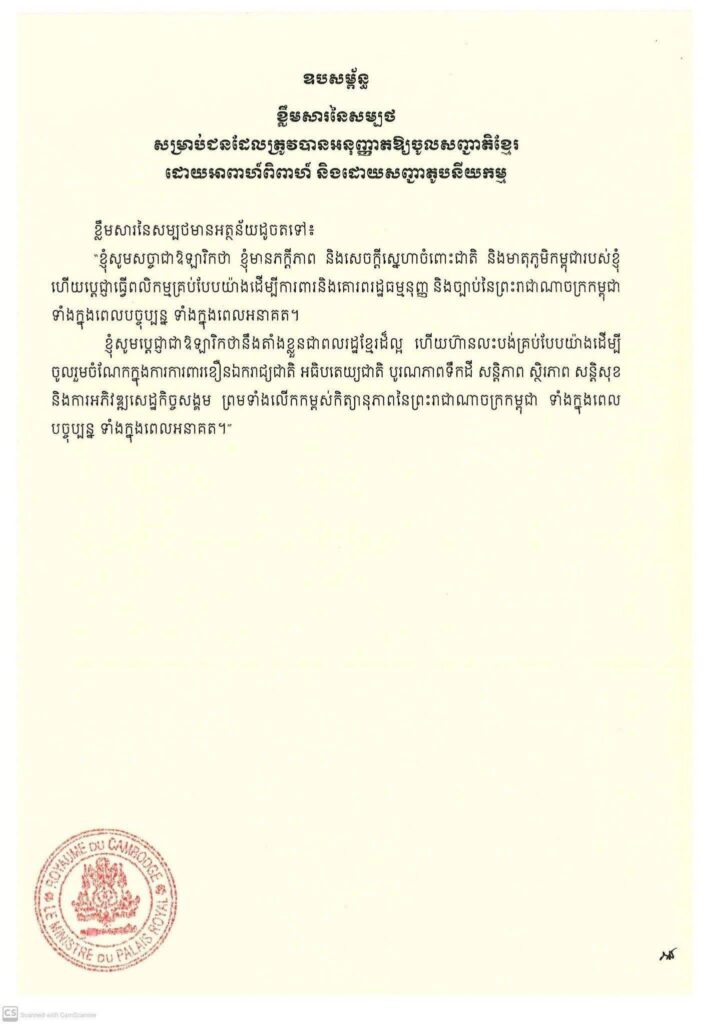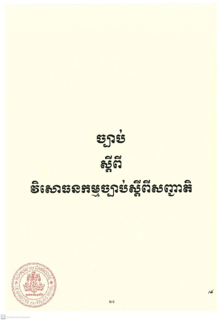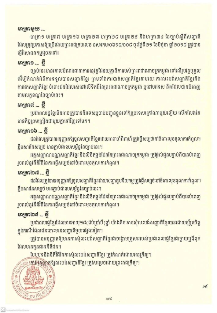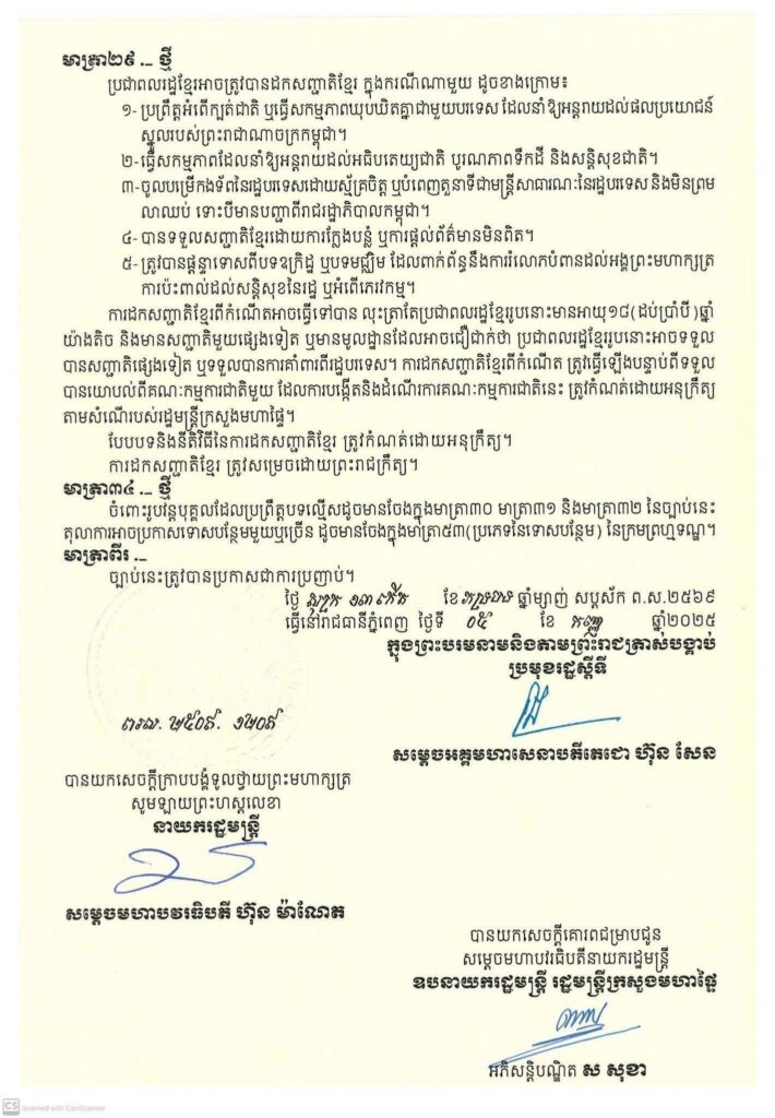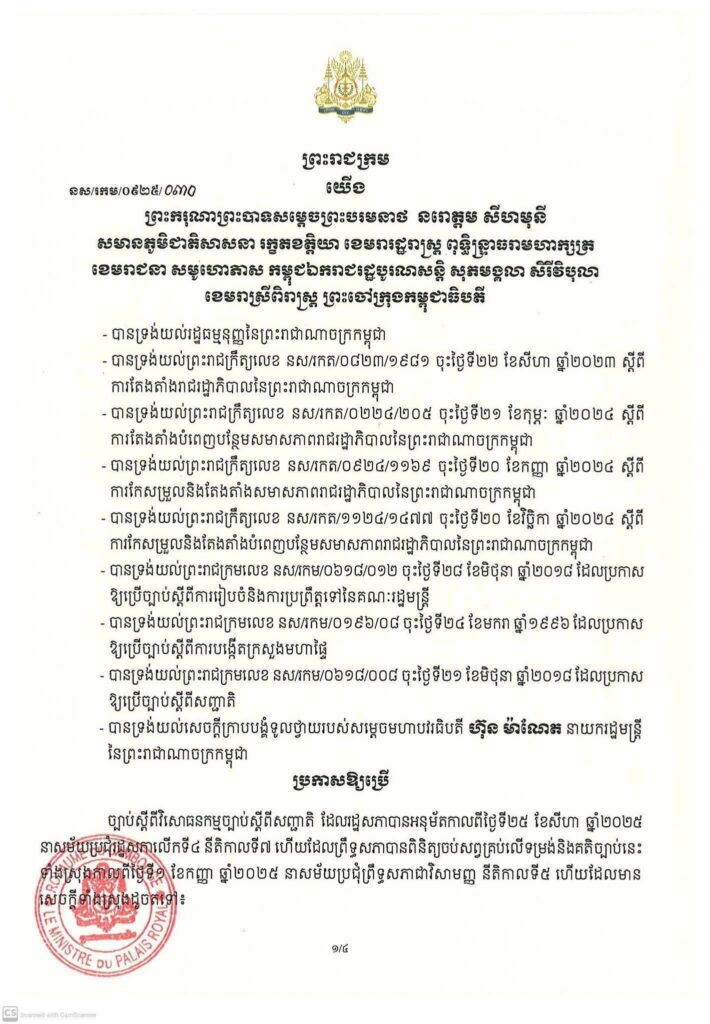 ប្រមុខរដ្ឋស្តីទី សម្តេចតេជោ ហ៊ុន សែន បានចេញព្រះរាជក្រម ដាក់ឲ្យប្រើប្រាស់ច្បាប់ស្តីពីសញ្ជាតិ។ នេះបើតាមព្រះរាជក្រមចុះថ្ងៃទី៥ ខែកញ្ញា ឆ្នាំ២០២៥។